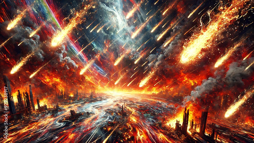 Meteorite crashes into the earth , The End of the World ,last days, Background. CG Digital Painting AI