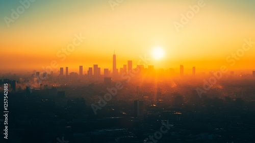 metropolitan horizon illustration, golden sunrise cityscape, urban silhouette design, warm sky composition, architectural outline study, panoramic city view, minimalist skyline art, morning urban