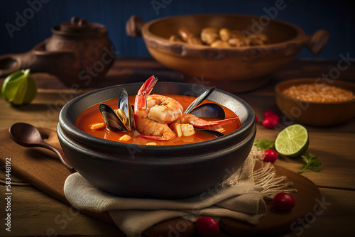 Mexican Seafood Soup: Spicy Cazuela de Mariscos. Generative AI