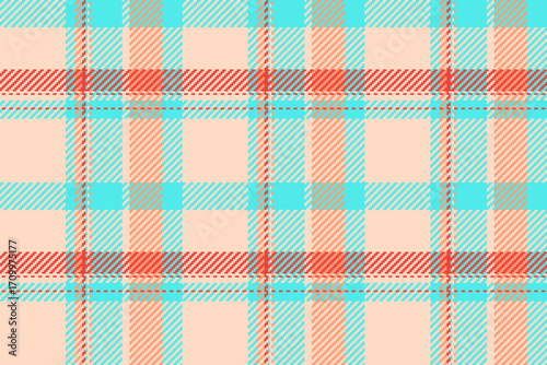 Mexican tartan texture vector, fall check seamless pattern. Art textile background fabric plaid in light and teal colors.