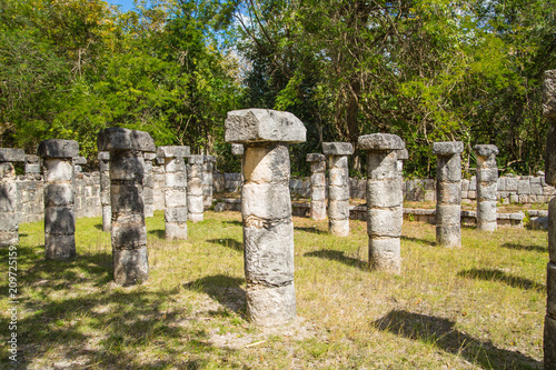 Mexico, Chichen Itzá, Yucatán. Temple of the Warriors with One Thousand columns gallery. Kukulcan El Castillo