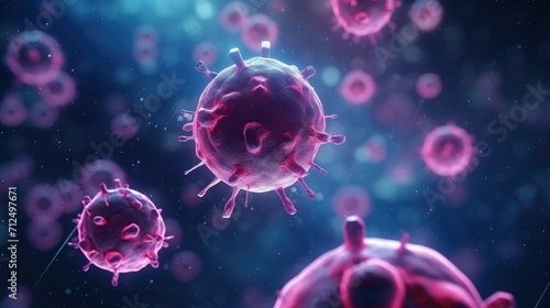 Micro bacteria and viruses of various shapes against a blue light background. Pathology background concept