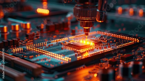 Microchip close-up with beautiful light. Puce lectronique, processeur en gros plan avec une belle lumi re. AI generated illustration