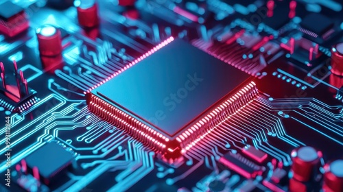 Microchip embedded in futuristic device, advanced tech, semiconductor technology, device innovation