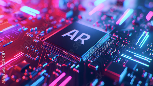 Microchip with the text 'AR. Concept of Augmented Reality in latest generation computers.