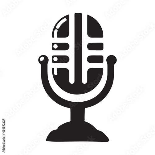 Microphone Icon Silhouette Logo Sticker Vector Isolated on White Background Audio Symbol Design