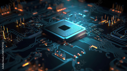 Microprocessor and CPU technology background. Main microchip on the motherboard. Based on Generative AI