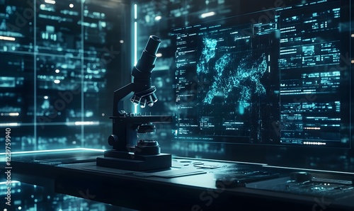 Microscope, digital map, lab, research, data analysis