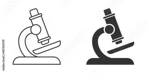 Microscope icon in flat style. Laboratory magnifier vector illustration on isolated background. Biology instrument sign business concept.