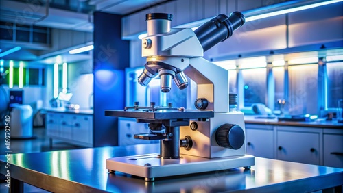 Microscope In A Modern Laboratory. Scientific Research And Development Concept.