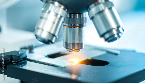 Microscope in Laboratory: A close-up view of a sophisticated microscope, a crucial tool in a laboratory, reflecting precision, exploration, and the pursuit of knowledge.