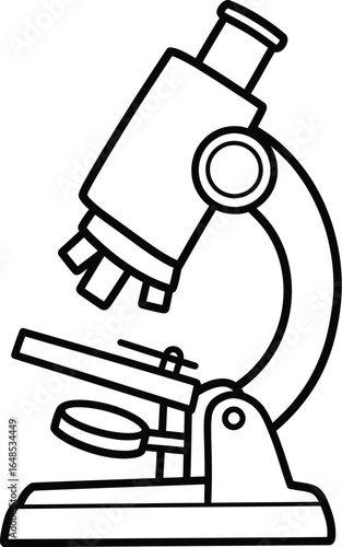 Microscope Line Art Illustration in Black and White on Transparent Background