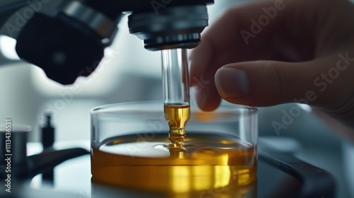 Microscope Sample Analysis Golden Liquid Dropper Pipette Research