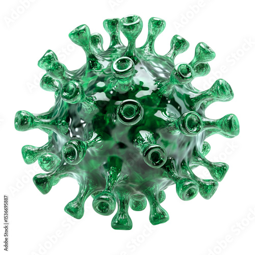 Microscopic 3D Render of a Green Virus Particle, Isolated on Black Background