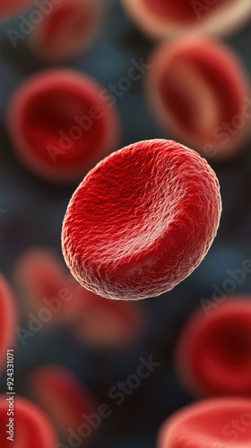 Microscopic image of a red blood cell, showing its biconcave shape and detailed surface texture, essential for hematology studies.
