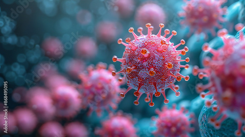Microscopic macro closeup view of floating influenza virus cells concept illustration