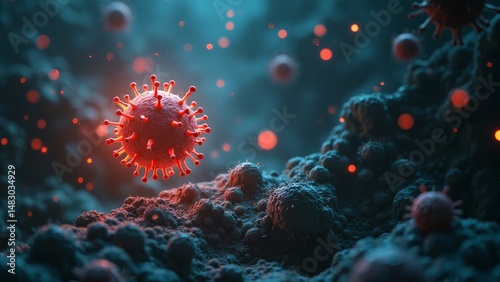 Microscopic red virus scene