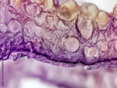 Microscopic View of a Tooth Infection, Revealing the Complex Interplay of Damaged Tissue and Microbial Growth