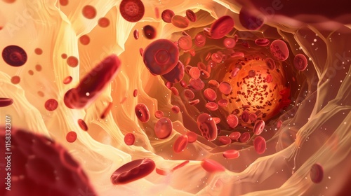 Microscopic View of Blood Flowing Through an Artery