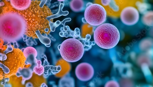 Microscopic View of Cells: Colorful 3D Render of Cellular Structures