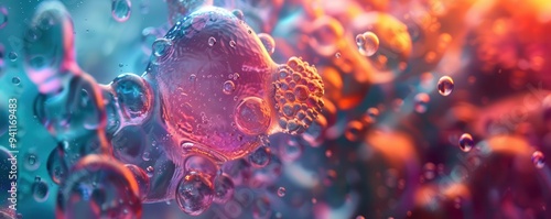 Microscopic view of cells, Futuristic, Detailed, Digital, Highlighting biological intricacy