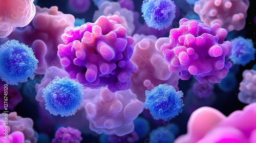 Microscopic view of cells, showcasing detailed surface structures and vibrant color gradients. A mesmerizing world of biology.