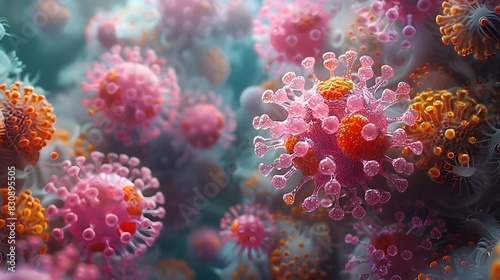 Microscopic View of Colorful Viral Outbreak Organism Cells