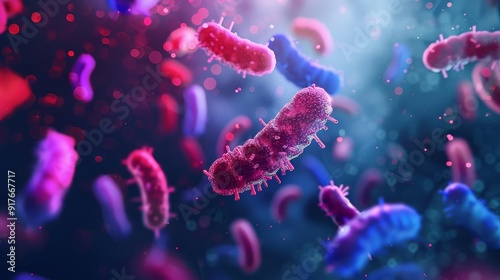 Microscopic view of disease-causing microbes in polluted air, highlighted with holographic effects, dark and vibrant contrast, sci-fi, detailed sketch.