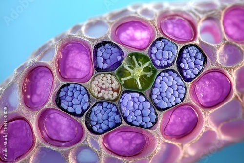 Microscopic view of keratinocytes, arranged in layers within the epidermis