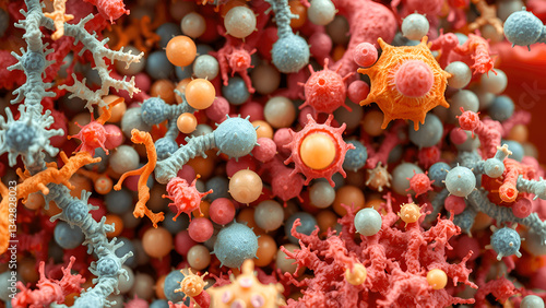 Microscopic View of Pathogenic Bacteria and Viruses – Colorful Abstract Representation of Microbes and Infectious Diseases