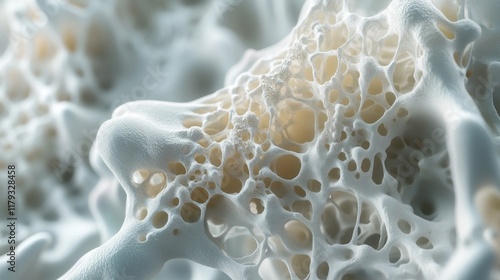 Microscopic view of porous bone structure, showing intricate network of trabeculae.