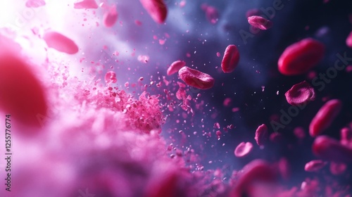 Microscopic View Of Red Blood Cells In Motion Abstract Medical Illustration