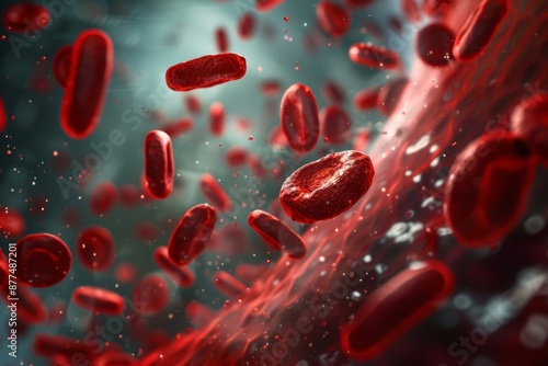 Microscopic view of red blood cells moving swiftly through blood vessels, facilitating the exchange of gases and nutrients.