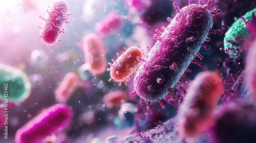 Microscopic view of vibrant bacteria in dynamic interaction under laboratory conditions