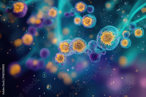 Microscopic view of vibrant cells, possibly representing a biological process or microorganisms.