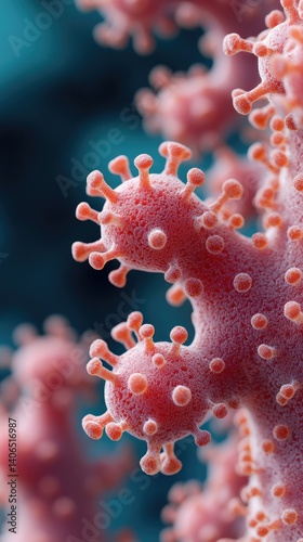 Microscopic view of virus cells with detailed texture, and a dark backdrop