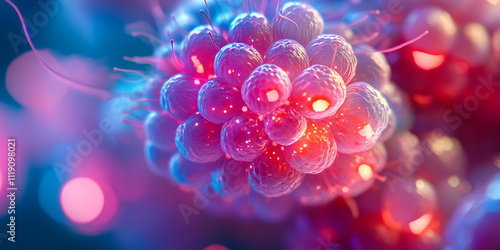 Microscopic Wonders: A vibrant, close-up view of a microscopic cluster, capturing the intricate beauty of cellular structures in a captivating, abstract design.