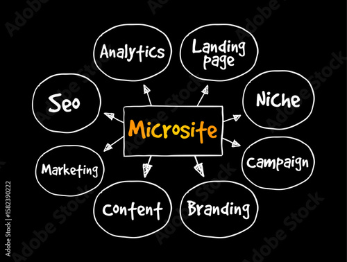 Microsite - website that promotes a company's products, services, campaigns or entire brand, mind map text concept background