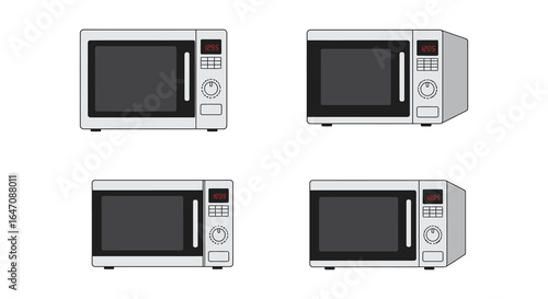 Microwave Oven Illustration Set Kitchen Appliance in Multiple Angles and Views