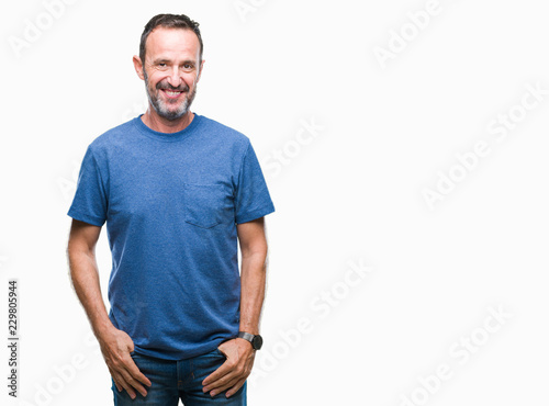 Middle age hoary senior man over isolated background with a happy and cool smile on face. Lucky person.