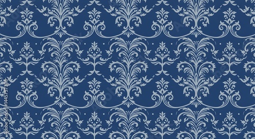 Midnight Bloom Damask AI Generated