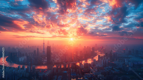 Milan City Skyline Created with Generative AI Technology: Futuristic Urban View