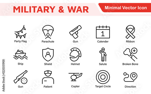 Military & War Icon Set. A powerful collection of icons representing defense and combat themes, perfect for enhancing educational materials, military websites, and historical projects.