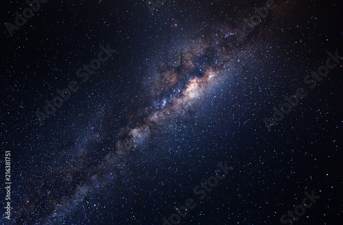 Milky Way Galaxy with stars and space dusts. soft focus and noise due to long expose and high iso.