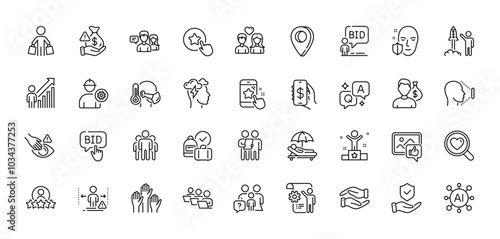 Mindfulness stress, Group and Teamwork line icons pack. AI, Question and Answer, Map pin icons. Face protection, Dont touch, Salary web icon. Engineer, Buyer, Family questions pictogram. Vector