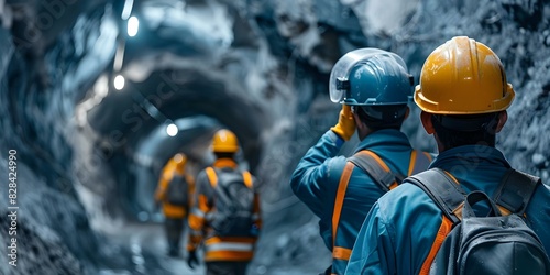 Miners in hardhats at work in a mine. Concept Miners, Hardhats, Work, Mine, Industry