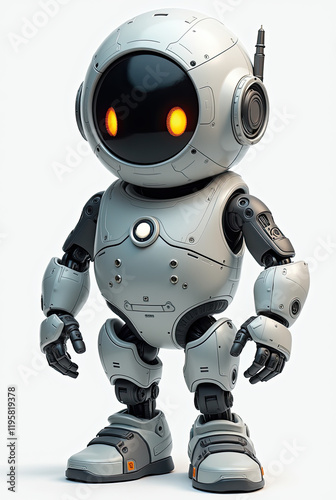Mini robot with artificial intelligence, isolated on a vertical background.