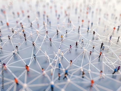 Miniature figures connected by lines, illustrating a large social network.