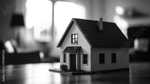 Miniature house with intricate details and open windows. Perfect for architecture enthusiasts or as a playful interior decoration.