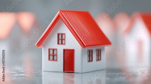 Miniature model of a house with a bright red roof on a reflective surface, representing home ownership and real estate concepts